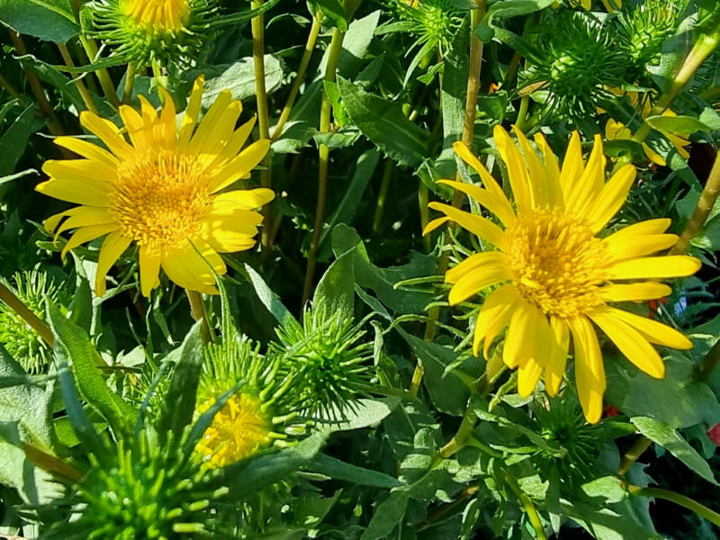Was für ein Blütenmeer, und was für verschiedenste Insekten, und das auf einer Pflanze. Wir waren nicht nur beeindruckt, sondern auch verwundert warum gerade größere Käfer auf den Blüten herum balancierten. Es liegt wohl an den vielen guten Eigenschaften dieser aus Nordamerika/Rocky Mountains stammenden Pflanze. Hier wird das Gummikraut schon seit Jahrhunderten von den Ureinwohnern verwendet. Vor allem liegt es wohl an dem Harz welches die Pflanze absondert. Dieses Harz und auch die andere Pflanzenteile wirken antibakteriellen und entzündungshemmend und wirken krampf- und schleimlösend und kann auch bei Hautirritationen Verwendung finden. Bienen in allen Größen, Hummeln und vielen anderen kleine und große Insekten besuchen die weithin Goldgelb leuchtenden Blüten von Juni bis September/Oktober. Sie erreicht eine Höhe bis 120cm und bleibt im Winter grün. Geliefert werden 1g, das sind ca. 400 Samen. (Saatgutmenge von 0.5g auf 1.0g am 18.04.2023 erhöht.)