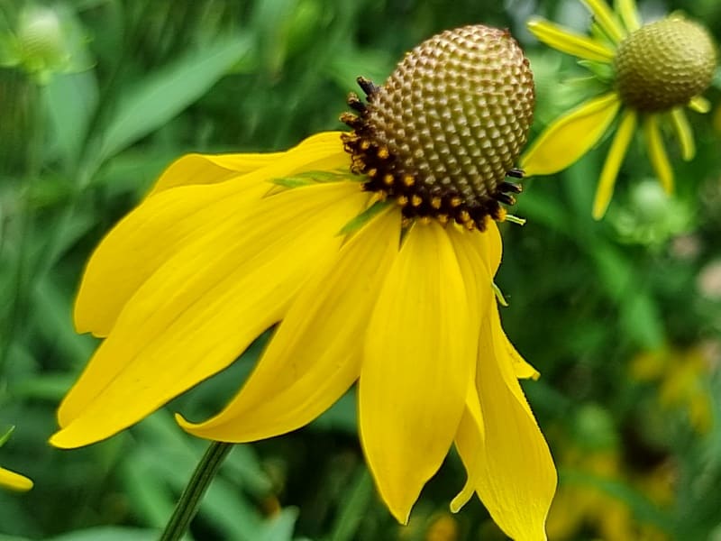 Gelbe Präriezapfenblume - Ratibida pinnata ist eine reichlich satt gelb blütentreibende Trachtpflanzen aus den Weiten der Prärien der USA und Kanadas. In den Great Plains verzaubert sie ganze Landstriche in ein gelbes Blütenmeer und auch in unserem Staudenbeet hat diese Pflanze total überzeugt. Es ist schon eine merkwürdig anmutende Staude mit ihren hängenden Blütenblättern. Sehr gut ist hier die Blütezeit für die Insektenwelt bis weit in den September/Oktober hinein. An dieser Staude kommt kein Insekt vorbei, vor allem Schmetterlinge, Biene und Hummeln und viele Wildinsekten besuchen die Staude und laben sich an den 5-10cm großen gelben Blüten. Die Pflanze ist mehrjährig, winterhart und aufrechtwachsend und toleriert nasse wie auch trockene Wetterphasen. Sie erreicht auf normale Gartenböden Höhen von 80-120, aber auch bei guten Nährstofflagen 150 cm. Die Gelbe Präriezapfenblume - Ratibida pinnata steht am besten in vollsonniger Lage auf durchlässigen Böden, Staunässe über einen langen Zeitraum ist zu vermeiden. Wir liefern 0,3g, das sind ca. 200 Samen.