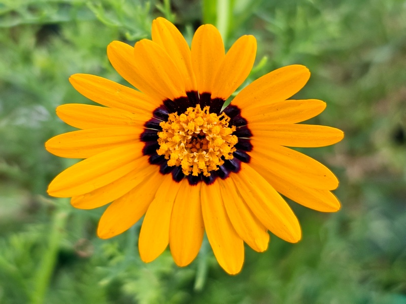 Bärenkamille - Ursinia anethoides ist eine Pflanzenart aus der Familie der Korbblütler (Asteraceae). Sie stammt ursprünglich aus Südafrika und wächst dort in den Fynbos- und Renosterveld-Regionen. Die Bärenkamille ist eine einjährige Staude, die eine Höhe von etwa 30-60 cm erreicht. Sie bildet dichte Büschel aus schmalen, graugrünen Blättern. Die 3-5cm großen Blütenstände sind endständige Körbchen mit gelborangenen Zungenblüten und dunkelbraunen, rötlichen Scheibenblüten. Die Blütenstände ähneln Gänseblümchen und haben einen angenehmen, süßen Duft. Bienen, Hummeln und vielerlei Wildinsekten versammeln sich auf den bezaubernden Blüten.
