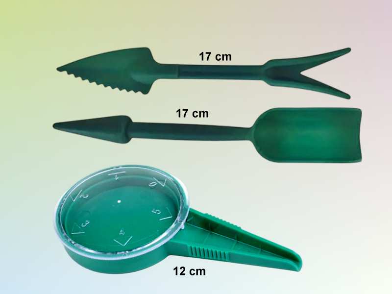 Dieses Pikier-Set besteht aus drei Werkzeugen, die speziell für die Aussaat und das Pikieren von Sämlingen oder Stecklingen entwickelt wurden. Der Saatgutspender erleichtert das punktgenaue Ablegen des Saatguts und die Dosierung der gewünschten Anzahl an Samenkörnern. Gerade bei feinem Saatgut ist er ein absolutes Muss. Der Pikierstab mit seiner dünnen Endspitze ermöglicht es, den Sämling vorsichtig aus der Erde zu heben, ohne die Wurzeln zu beschädigen. Er ermöglicht es, den Sämling leicht in einen neuen Topf oder ein neues Beet zu setzen. Das dritte Werkzeug ist eine Pikiergabel mit kleinen Zinken, die die Erde um den Sämling herum vorsichtig lockern und belüften, ohne die Wurzeln zu stören. Dies fördert das Wachstum der Pflanze und verbessert die Gesundheit der Wurzeln. Damit kann man auch sehr gut die Sämlinge aus den Trays heben, ohne die Wurzelballen zu beschädigen. Das Pikier-Set ist einfach zu verwenden und erleichtert die Pflege sowie das Umtopfen junger Pflanzen. Es ist ein unverzichtbares Werkzeug für jeden Hobbygärtner oder Pflanzenliebhaber.
