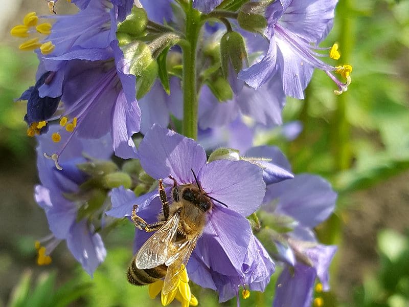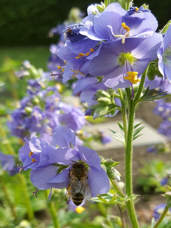 Die Jakobsleiter - Polemonium caeruleum ist eine heimische Wildstaude und ist nur noch selten in freier Natur anzutreffen. Um so wichtiger ist es diese faszinierende Trachtpflanze unseren Bienen zu erhalten, liefert diese doch viel Pollen und viel Nektar gleichermaßen. Am besten gedeiht die Jakobsleiter in leicht feuchten und nährstoffreichen Böden, kommt aber auch schon mal mit trockneren Tagen gut zurecht. Vollsonnig aber auch Halbschatten sollte der Standort sein. Nach der ersten Blütenphase zurückschneiden, dann erhält man eine zweite Blütenphase im Herbst. Wir liefern 0,8g, das sind ca. 500-600 Samen. Auch als Jakobsleiter Weiss, hier im Shop erhältlich.
