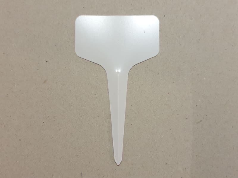 Stecketiketten in der Größe von 100x60 mm aus Polyesterfolie, weiß, 15 Etiketten. Diese Stecketiketten eignen sich besonders zur Kennzeichnung von Blumentöpfen und Saatreihen und sind mit Edding, Fettstift oder Bleistift beschreibbar. Auch ein kleiner am Computer erstellter Aufkleber kann auf der Kennzeichnungsfläche von 60x30 mm aufgeklebt werden.